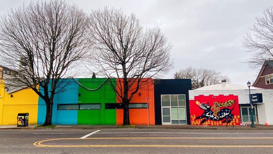 “Liberate” 2023 Mural for Open Signal in Northeast Portland, Oregon. This is a temporary mural program called Fresh Paint that features murals by emerging artists of color. The murals are a collaboration between Open Signal and the